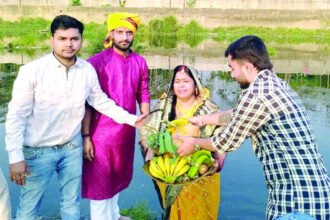 चैती छठ महापर्व पर महिलाओं ने डूबते सूर्यदेव को दिया संध्या अघ्र्य