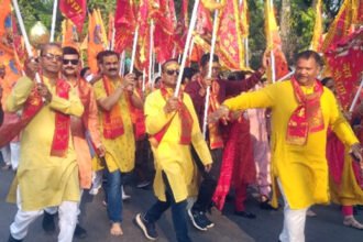 हनुमान जी के जयकारे के साथ शहर में निकली भव्य निशान यात्रा