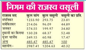 बताया जाता है की इस वित्तीय वर्ष और पिछले वित्तीय वर्ष के बकाया के अनुसार इस वित्तीय वर्ष में 2987.41 लाख राजस्व वसूली की डिमांड है। जबकि इस वित्तीय वर्ष के 31 दिसंबर 2023 तक की स्थिति में 1204.63 लाख राजस्व की प्राप्ति हो पाई है। इस तरह मात्र 40 प्रतिशत राजस्व निगम के खजाने में जमा हो पाया है। ऐसी स्थिति में निगम प्रशासन के द्वारा राजस्व वसूली तेज करने वार्डों में सिरि लगाया जा रहा है। जिससे आने वाले दिनों में राजस्व प्राप्ति के आंकड़ों में वृद्धि होने का अनुमान लगाया जा रहा है। हालांकि शिविर से लोग टैक्स जमा करने के लिए कितने उत्सुकता दिखाएंगे यह तो आने वाले दिनों में ही पता चल पाएगा, लेकिन महापौर जानकी काटजू का कहना है कि वार्डो में सिविर लगाकर राजस्व अमले द्वारा घर-घर दस्तक दी जा रही है और लोगों को सभी तरह के टैक्स का भुगतान नियत समय पर करने प्रोत्साहित किया जा रहा है। जिससे वित्तीय वर्ष के अंत तक लक्ष्य के अनुरूप राजस्व की प्राप्ति होने की संभावना है।