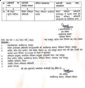 NavinKadam > रायपुर > परिवहन विभाग में प्रमोशन के बाद तबादला