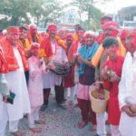 गुजरात से 1100 किलोमीटर की पैदल यात्रा कर धर्म ध्वजा लेकर श्री प्राणनाथ जी मंदिर पहुंचे तीर्थ यात्री