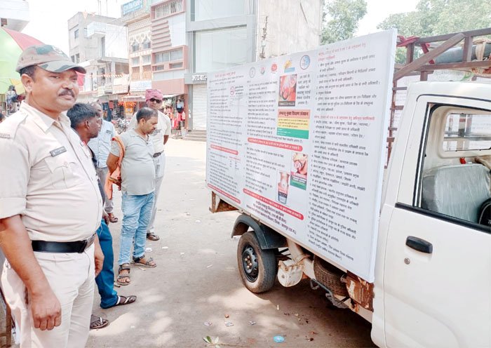 जशपुर। नशे की विरुद्ध जशपुर पुलिस एवं स्वास्थ्य विभाग की संयुक्त पहल की जा रही है इस हेतु स्वास्थ्य विभाग के साथ मिलकर दिनांक 23.05.2024 को मीटिंग आयोजित की गई थी, जिसमें नशे के दुष्परिणामों के बारे में विस्तार से चर्चा कर कोटपा एक्ट के तहत कार्यवाही करने हेतु एक विशेष टीम का गठन किया गया, जो इस प्रावधान के तहत कार्यवाही करेंगे। उक्त टीम द्वारा दिनांक 23.05.2024 से 30.05.2024 तक जिले के समस्त विभिन्न थाना/चौकी क्षेत्र में भ्रमण कर आम लोगों को जागरूक किया गया, सार्वजानिक स्थल, हॉट बाजार, दुकानों, विभिन्न शैक्षणिक संस्थानों में जाकर सिगरेट व अन्य तम्बाकू उत्पाद (विज्ञापन का प्रतिषेध और व्यापार तथा वाणिज्य, उत्पादन प्रदाय और वितरण का विनियमन) अधिनियम 2003 (कोटपा) के संबंध में, साथ ही सार्वजनिक स्थानों पर धुम्रपान को निषेध किया गया है तथा दंडनीय अपराध के श्रेणी में रखा गया है इस संबंध में विस्तार से बताया जाकर जागरूक किया गया। 18 वर्ष से कम आयु के व्यक्ति को सिगरेट या अन्य तंबाकू उत्पाद के विक्रय व्यापार पर प्रतिषेध का प्रावधान है। कोटपा एक्ट को लेकर पुलिस अधीक्षक जशपुर श्री शशि मोहन सिंह द्वारा अभिनित एवं निर्मित शॉर्ट फिल्म लोगों को दिखाया गया। तम्बाकू गुटखा इत्यादि के सेवन करने से मुंह में कैंसर होता है एवं मुंह कम खुलता है, सिगरेट पीने से फेफड़ों में समस्या होती है इसके बारे में बताया गया। पुलिस अधीक्षक जशपुर शशि मोहन सिंह द्वारा कहा गया है कि – कोटपा एक्ट के संबंध में 01 सप्ताह तक पूरे जिले में जागरूकता अभियान चलाया गया है, कल से चालानी कार्यवाही की जाएगी।