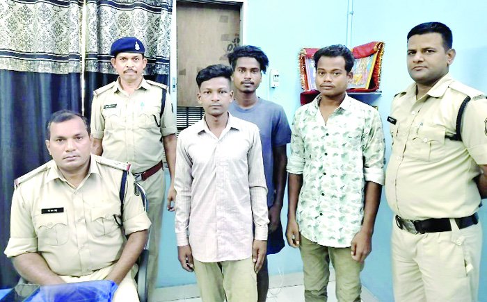रिपोर्टकर्ता ने बताया कि 10 जून के रात्रि जेएमजे अस्पताल में भर्ती अपने बेटे के लिए घर से खाना लेकर अपनी इंडिगो कार से अस्पताल आ रहा था, रात्रि करीब 09.30 बजे गांव के प्राथमिक स्कूल भोजपल्ली के पास गांव के दिनेश शर्मा, अमित साहू, अमन गुप्ता, भोलानाथ खडिय़ा और चंद्रहास किसान मिलकर गाड़ी को रोके और कार नीचे उतारकर गाली गलौज करते मारपीट किये तथा इसके जेब में रखे 11,500 लूटकर भाग गए, रिपोर्टकर्ता के रिपोर्ट पर थाना चक्रधरनगर में आरोपियों के विरूद्ध धारा 341, 395 आईपीसी का अपराध कायम कर आरोपियों की गिरफ्तारी के लिए दबिश दिया गया जिसमें पुलिस ने आरोपी अमन गुप्ता, चंद्रहास किसान, भोलानाथ खडिय़ा को गिरफ्तार किया गया। आरोपियों ने पुरानी रंजिश पर दिनेश शर्मा और अमित साहू के साथ घटना कारित करना स्वीकार किये हैं। चक्रधरनगर पुलिस द्वारा आरोपी अमन गुप्ता से 900, चंद्रहास किसान से 1000 तथा भोलानाथ खडिय़ा से 1000 की जप्ती की गई है, आरोपियों ने कुछ रकम को खाने पीने में खर्च कर देना बताए हैं। गिरफ्तार आरोपी अमन गुप्ता पिता गौतम गुप्ता उम्र 25 साल निवासी विश्वनाथपाली थाना चक्रधरनगर, चंद्रहास किसान पिता सनत राम किसान उम्र 24 साल ,भोलानाथ खडिय़ा पिता सुखदेव खडिय़ा उम्र 24 साल दोनों निवासी भोजपल्ली थाना चक्रधरनगर को आज न्यायिक रिमांड पर भेजा गया है। प्रकरण के दो नामजाद आरोपी दिनेश शर्मा और अमित साहू फरार है, चक्रधरनगर पुलिस आरोपियों की गिरफ्तारी के लिए मुखबिर लगा रखी है।
