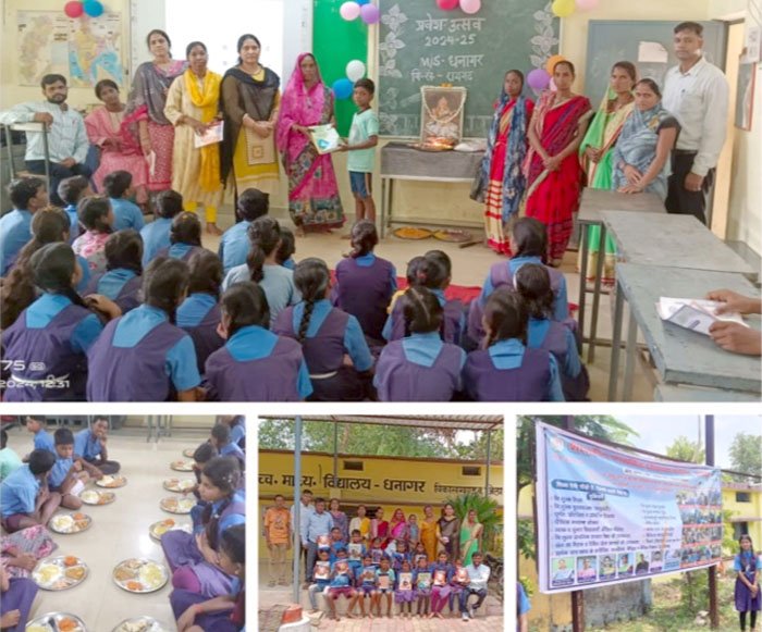 रायगढ़। आज 26 जून को शासकीय माध्यमिक विद्यालय धनागर में बड़े धूमधाम से प्रवेशउत्सव मनाया गया जिसमें नव प्रवेशी बच्चों का होली तिलक लगाते हुए पुष्प गुछ से स्वागत अभिनंदन किया गया इसके पश्चात शाला के प्रधान पाठक, शिक्षक गण, शाला प्रबंधन समिति के सदस्य, गांव के गणमान्य नागरिक एवं नव प्रवेशी बच्चों के पालक की उपस्थिति रही। कार्यक्रम में सर्वप्रथम मां सरस्वती की प्रतिमा का पूजनकिया गया तत्पश्चात छात्र-छात्राओं द्वारा सरस्वती वंदन किया गया सभी नव प्रवेशी बच्चों को गणवेश, पाठ्य पुस्तक वितरण किया गया इसके साथ ही विद्यालय के प्रधान पाठक के द्वारा नव प्रवेशी बच्चों को उपहार स्वरूप काफी पेन दिया गया। विद्यालय की ओर से सभी छात्र-छात्राओं, पालक गणमान्य नागरिक व शाला प्रबंध समिति के सदस्यों के लिए न्योता भोज का आयोजन किया गया था। इस प्रकार बड़े धूमधाम से शाला में प्रवेश उत्सव मनाया गया।