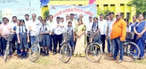 साइकिल की चाबी मिलते ही बच्चियों के चेहर खिल उठे