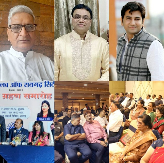 रायगढ़। शहर के होटल अकार्ड प्रीमियर में विगत दिवस 7 अगस्त को बेहद खुशनुमा माहौल में लॉयंस क्लब ऑफ रायगढ़ सिटी ने यादगार भव्य शपथ ग्रहण 2024-25 समारोह का आयोजन किया। गणेश पूजन से शुभारंभ कार्यक्रम का शुभारंभ सर्वप्रथम भगवान गणेश की वंदना पूजा से प्रारंभ हुआ। इसके पश्चात सभी सदस्यों ने ध्वज गान किया। फिर मंचासीन अतिथियों ने लॉयंस क्लब के संस्थापक मेल्बीन जोंस की तस्वीर में माल्यार्पण व दीप प्रज्ज्वलित कर नमन किया। तत्पश्चात निवर्तमान लॉयंस क्लब अध्यक्ष बजरंग अग्रवाल लेन्ध्रा की अनुमति से सभा प्रारंभ हुई। मंच पर बिलासपुर से पधारे नामचीन लॉयन पी. एस बॉली पूर्व गवर्नर, लॉयन विजय अग्रवाल कोरबा आगामी गवर्नर तथा लॉयन शैलेष अग्रवाल पीएमजेएफ विशिष्टगण के रुप में उपस्थित थे। इनके अलावा रीजन चेयरमेन लॉयन श्रीमती लता अग्रवाल डोरा, शपथ अधिकारी के रूप में जोन चेयरमैन मनोज अग्रवाल होंडा विराजमान थे। लॉयंस क्लब ऑफ रायगढ़ सिटी के भव्य शपथ ग्रहण समारोह में लॉयन रामनिवास मोड़ा अध्यक्ष, लॉयन अरुण कुमार गोयल सचिव, लॉयन हर्ष अग्रवाल ने कोषाध्यक्ष पद की शपथ ली। इसके अतिरिक्त लॉयन गजानंद जगतरामका, लॉयन प्रेमचन्द अग्रवाल, लॉयन मोहन अग्रवाल, लॉयन श्याम सुंदर अग्रवाल ने विशेष संचालक एवं राजेन्द्र कुमार केडिया ने उपाध्यक्ष पद की शपथ ली। लॉयन मामनचंद शर्मा, लॉ एल एम गुप्ता, लॉ सागरमल अग्रवाल, लॉ केदारनाथ पटेल, लॉ प्रेम अग्रवाल (जामगांव) लॉ शैलेष कुमार अग्रवाल, लॉ गोपाल अग्रवाल (प्रेस) लॉ सागर महमिया , लॉ अजय अग्रवाल (दिनशा) आलोचन अग्रवाल आदि सदस्यों ने संचालक मंडल के सदस्य के रुप में शपथ ग्रहण की। सभागार में आगंतुक गणमान्यों का तिलक लगाकर व गुलाब पुष्प भेंट कर आत्मीय अभिनंदन किया गया। वहीं वरिष्ठजनों का अभिनंदन पुष्प गुच्छ भेंट कर आत्मीय अभिनंदन किया गया। वहीं लॉयन रीजन चेयरमैन श्रीमती लता अग्रवाल डोरा ने सभी कार्यकारिणी के सदस्यों को शपथ दिलाई। तथा मंच संचालन मुकेश गोयल एवं श्रीमती मनीषा वर्मा ने किया। वहीं सभी मंचासीन अतिथियों ने सभा को संबोधित किया। तथा सर्वप्रिय लॉयन संजय अग्रवाल बंजारी ट्रांसपोर्ट ने अपने विशिष्ट अंदाज में उद्बोधन दिया व बजरंग अग्रवाल लेन्ध्रा व पूर्व गवर्नर शैलेष अग्रवाल,अपने कार्यकाल के पुरस्कारों का वितरण किया।नवीन अध्यक्ष लॉयन रामनिवास मोड़ा ने सभा को संबोधित करते हुए अपने सेवा कार्य की प्रतिबद्धता को दोहाराई और सर्वाइकल कैंसर से बचाव हेतु जागरुकता और वेक्सीन पर कार्य करने की इच्छा प्रकट की। वहीं आभार प्रकट व धन्यवाद ज्ञापन सचिव लॉयन अरुण गोयल ने किया। भव्य शपथ ग्रहण समारोह में रायगढ़ के अन्य चार क्लबों के अध्यक्ष जिनमें पुरंजन पटेल लॉयंस क्लब रायगढ