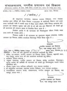 रायगढ़। नगरीय प्रशासन ने एक बार फिर अपनी सख्ती का परिचय देते हुए लापरवाही बरतने वाले अधिकारी के खिलाफ कड़ी कार्रवाई की है। जानकारी के मुताबिक, संबंधित अधिकारी पर अपनी जिम्मेदारियों का ठीक से निर्वहन न करने और कई अहम कार्यों में देरी करने का आरोप था। जांच के बाद प्रशासन ने अधिकारी को तत्काल प्रभाव से घरघोड़ा नगर पंचायत के