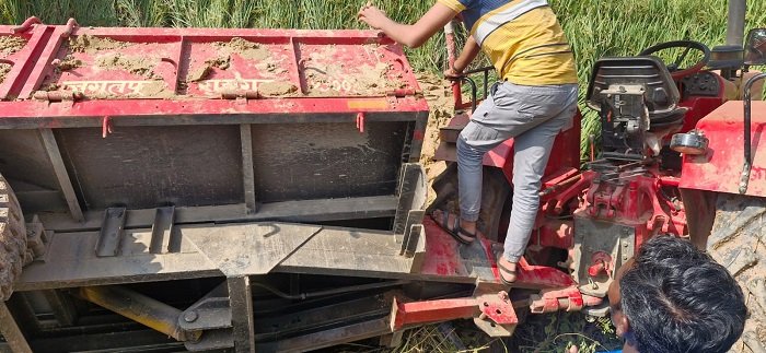तेज रफ्तार रेत से भरी ट्रैक्टर पलटी, चालक की मौत