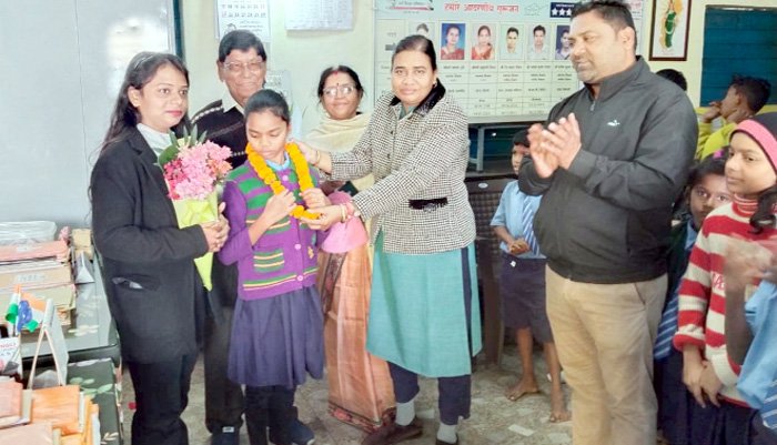इस शुभ अवसर पर सर्वप्रथम पूर्वी सिंह मरावी व उसके परिजनों ने विद्या की अधिष्ठात्री देवी मां सरस्वती की पूजा-अर्चना किया, तत्पश्चात् पूर्वी सिंह मरावी ने डॉ. मनीषा त्रिपाठी, प्रधान पाठक प्राथमिक शाला रविशंकर एवं श्रीमती प्रेमलता चंदेल, प्रधान पाठक माध्यमिक शाला चांदमारी व अन्य शालेय शिक्षकों का चरणस्पर्श कर आर्शीवाद प्राप्त किया। सभी ने छात्रा को शुभाशीष प्रदान कर उसके उज्जवल भविष्य की कामना की एवं उपहार भी भेंट किए। शालेय परिवार द्वारा पूर्वी सिंह मरावी के परिजन इतवार सिंह व सुश्री चित्ररेखा पोर्ते का आत्मीय स्वागत पुष्प गुच्छ भेंट कर किया गया। इसके पश्चात् श्री इतवार सिंह व सुश्री चित्ररेखा पोर्ते द्वारा उपस्थित विद्यार्थियों को न्यौता भोज अंतर्गत बिस्किट व चाकलेट वितरित किया गया, फलस्वरूप बच्चे आनंदित हुए। उपस्थित आगंतुकों ने शाला में चल रही गतिविधियों की प्रशंसा व सराहना की। शालेय परिवार ने आगंतुकों को धन्यवाद ज्ञापित किया। इस शुभ अवसर पर शिक्षक द्वय सन्नी खाण्डेय व श्रीमती कुमुदनी सिदार की विशेष उपस्थिति रही।