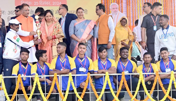 जशपुरनगर। मुख्यमंत्री विष्णु देव साय आज जशपुर के सराईटोली में भारत रत्न पूर्व प्रधानमंत्री श्री अटल बिहारी वाजपेयी की 100वीं जयंती के अवसर पर आयोजित अटल सुशासन चौपाल में शामिल हुए। उन्होंने इस अवसर पर छत्तीसगढ़ के निर्माता श्रद्धेय अटल जी को छत्तीसगढ़ की जनता की ओर से नमन किया। मुख्यमंत्री ने देश के निर्माण में उनके योगदान को याद करते हुए कहा कि छत्तीसगढ़ का रजत जयंती वर्ष ‘अटल निर्माण वर्ष‘ के रूप मनाया जाएगा। इस दौरान अधोसंरचना विकास के कार्य प्राथमिकता से किए जाएंगे। उन्होंने कहा कि हमारा राज्य छत्तीसगढ़ उनकी ही देन है।उन्होंने कहा कि अटल जी हमेशा अपने मूल्यों और सिद्धांतों पर अडिग रहते थे। आज पूरे प्रदेश में उनकी जयंती सुशासन दिवस के रूप में मनाई जा रही है।