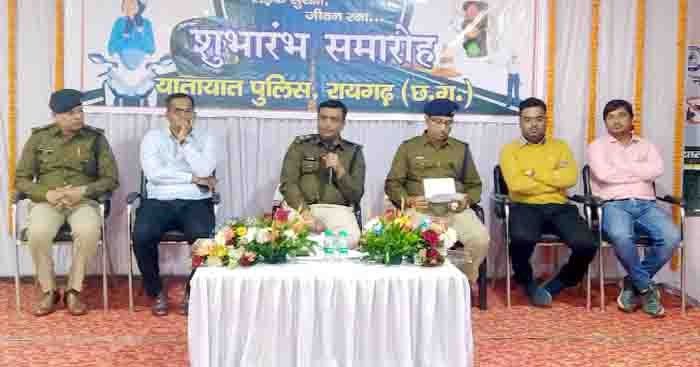 रायगढ़। जिले में आज 36वें राष्ट्रीय सडक़ सुरक्षा माह का शुभारंभ एक भव्य कार्यक्रम के साथ पुलिस सामुदायिक पुलिस भवन में हुआ। इस कार्यक्रम में पुलिस अधीक्षक दिव्यांग कुमार पटेल, नगर निगम कमीशनर बृजेश सिंह क्षत्रिय तथा द्वेय अतिरिक्त पुलिस अधीक्षक आकाश मरकाम, राम गोपाल करियारे, जिला परिवहन अधिकारी अमित कश्यप, एनटीपीसी के एजीएम श्री जाकिर खान मंचासीन थे। अतिथियों द्वारा मां सरस्वती की प्रतिमा के समीप दीप प्रज्वलित कर विधिवत कार्यक्रम का शुभारंभ किया गया।