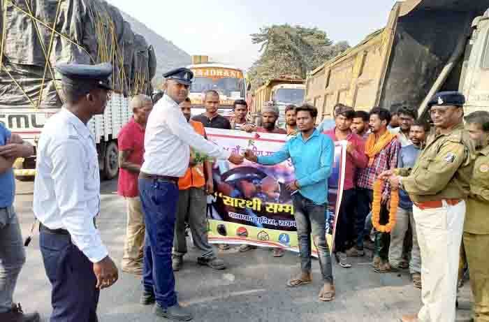 पुलिस अधीक्षक दिव्यांग पटेल के निर्देशन और अतिरिक्त पुलिस अधीक्षक आकाश मरकाम के मार्गदर्शन पर डीएसपी ट्रैफिक उत्तम प्रताप सिंह के नेतृत्व में यातायात पुलिस ने आज शहर के विभिन्न प्रमुख स्थानों छातामुड़ा चौक, जोरापाली चौक, जिंदल बैरियर, इंदिरा विहार और केवड़ाबाडी बस स्टैंड पर यह कार्यक्रम आयोजित किया। ट्रैफिक नियमों का पालन करते हुए पाए गए वाहन चालकों को पुष्प भेंट कर सम्मानित किया गया और उन्हें ष्सारथी सम्मानष् कार्यक्रम की जानकारी दी गई।