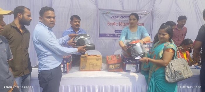 रायगढ़। जिंदल फाउण्डेशन, जेेपीएल तमनार ने अपने सामाजिक सरोकार निर्वहन अंतर्गत सडक़ सुरक्षा माह अंतर्गत आमजनमानस को सडक़ सुरक्षा एवं यातायात नियमों के प्रति जागरूकता व संवेदनशील पहल में करते हुए दो पहिया वाहन चालकों को 652 नग हेलमेट का वितरण किया। इस दौरान टीम सीएसआर के कर्मचारियों के द्वारा सडक़ दुर्घटना के कारणों को समझाते हुए बिना हेलमेट उपयोग के बिना वाहन चालन के दुष्परिणामों को बताते हुए दो पहिया वाहन चालकों के लिए हेलमेट को अनिवार्य बताते सडक़ नियमों को पालन करने का आग्रह किया।