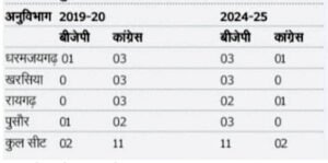 बल्कि पार्षदों के वोट से जानकी काटजू महापौर बनी..2023 में हुए अगला चुनाव प्रकाश नायक हार गए और भाजपा से विधायक बने ओपी चौधरी ..विधायक बनने के साथ ही ओपी ने विधान सभा में विकास के ऐसे चौके छक्के लगाए कि बतौर विपक्ष फील्डिंग करते हुए कांग्रेसियों के हौसले पस्त हो गए…एक साल बाद हुए निगम चुनाव में ओपी ने महापौर प्रत्याशी हेतु चाय वाले जीवर्धन पर अपनी मुहर लगाई तो कांग्रेस बिना चुनाव लड़े ही हारी हुई नजर आने लगी और विकास की राजनीति के साथ ओपी के धुंआधार प्रचार का यह असर हुआ कि जितने वोट से जीवर्धन जीते उतने वोट कांग्रेस की महापौर रही जानकी काटजू को नहीं मिल पाए…चुनाव प्रचार के दौरान ओपी ने आम जनता से मार्मिक अपील करते हुए कहा कि कांग्रेस को वोट देकर अपना वोट खराब नहीं करे…कांग्रेस का अभेद गढ़ रहे खरसिया की तीन सीट कांग्रेस के कब्जे में थी लेकिन यहां से कांग्रेस एक भी सीट नहीं जीत पाई और शून्य में आ गई वही खरसिया नगर पंचायत अध्यक्ष का पद भी कांग्रेस हार गई। पुसौर में तीन जिला पंचायत की सीट में दो कांग्रेस के कब्जे में थी लेकिन इस बार कांग्रेस अपने कब्जे वाली दोनों सीट हार गई इस तरह पहली बार पुसौर और खरसिया जिला पंचायत अब कांग्रेस मुक्त हो गया..पिछले बार 13 सीटों में 2 भाजपा के पास थी और 11 सीटे कांग्रेस के पास थी लेकिन ओपी के विकास की राजनीति का यह जादुई असर रहा कि कुल 13 सीटों में 11 भाजपा के कब्जे में रही और कांग्रेस 11 सीटों से घटकर 2 सोटो में आ गई वही धर्म जय गढ़ और लैलूंगा में नगर पंचायत अध्यक्ष का चुनाव भी हार गई। ओपी द्वारा लगाए गए विकास की राजनीति के नारे का तोड़ खोज पाने में कांग्रेस असफल रही।