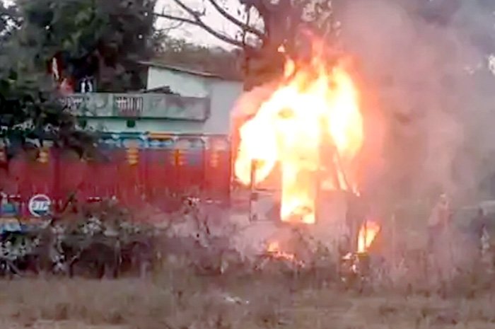 पीडीएस चावल से भरे ट्रक में लगी आग