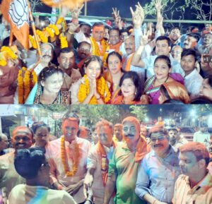 शिखा गबेल विजय श्री के उपरांत खरसिया पहुंचने पर महेश साहू नगर पालिका अध्यक्ष कमल गर्ग जनपद पंचायत अध्यक्ष राम कुमारी राठिया उपाध्यक्ष डॉ हितेश गबेल मंडल अध्यक्ष विजय शर्मा के नेतृत्व में सभी जनपद सदस्य खरसिया नगर पालिका पार्षद एवं भाजपा के वरिष्ठ नेताओं एवं कार्यकर्ताओं द्वारा भव्य आतिशबाजी करते हुए खरसिया के महात्मा गांधी रायगढ़ चौक पर भव्य स्वागत किया गया। रायगढ़ चौक से आतिशबाजी एवं गाजे बाजे के साथ भव्य विजय जुलूस खरसिया नगर में निकाला गया।
