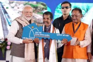 मोदी ने कहा कि छत्तीसगढ़ के 3 लाख गरीब परिवार अपने नए घर में गृहप्रवेश कर रहे हैं। मुझे यहां तीन लाभार्थियों से मिलने का अवसर मिला। उनके चेहरे पर खुशी नहीं समां रही थी। मां तो अपना आनंद रोक नहीं पा रही थी। मोदी ने कहा कि 3 लाख परिवारों को नए जीवन के लिए बहुत शुभकामनाएं देता हूं। गरीब परिवारों के सिर पर पक्की छत आप सभी की वजह से ही संभव हो पाई है। क्योंकि आपने मोदी की गारंटी पर भरोसा किया। छत्तीसगढ़ के लाखों परिवारों के पक्के घर का सपना पहले की सरकार ने फाइलों में गुमा दिया था। तब हमने गारंटी दी थी। ये सपना हमारी सरकार पूरा करेगी। इसलिए विष्णुदेव की सरकार बनते ही पहली कैबिनेट में 18 लाख घर बनाने का निर्णय लिया गया। आज उनमें 3 लाख घर बनकर तैयार है। मुझे खुशी है, इसमें बहुत सारे घर आदिवासी क्षेत्रों में बने हैं। बस्तर और सरगुजा के अनेक परिवारों को अपने पक्के घर मिले हैं। जिन परिवारों की अनेक पीढिय़ों ने झोपडिय़ों में बेहाल जीवन बिताया है। ये उनके लिए कितना बड़ा उपहार है।