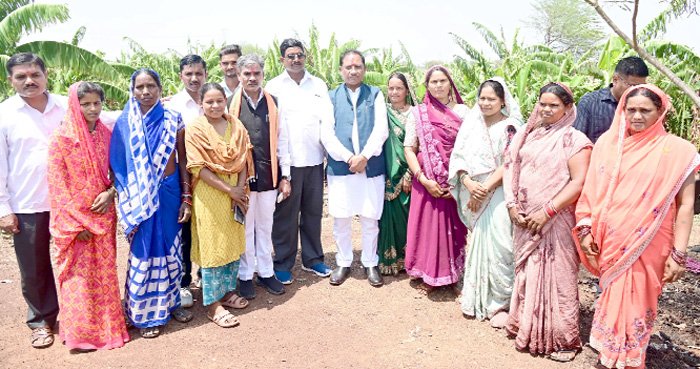 रायपुर। मुख्यमंत्री विष्णु देव साय आज सुशासन तिहार के तहत औचक निरीक्षण पर बेमेतरा जिले के ग्राम सहसपुर आये। इस दौरान वे सहसपुर ग्राम के उत्कृष्ट किसान श्री रोहित साहू के खेत में भी पहुंचे। मुख्यमंत्री को श्री साहू ने बताया कि वे पिछले 9 साल से केला और पपीता की खेती कर रहे हैं, जिससे वे लाखों का मुनाफा कमा रहे हैं और 15-20 लोगों को अपने खेत में रोजगार भी दे रहे हैं। मुख्यमंत्री श्री साय को कृषक श्री साहू ने अपने खेत के ताजे केला और पपीता भेंट किये। मुख्यमंत्री को उन्होंने बताया कि वे 5 एकड़ में केला और साढ़े तीन एकड़ में पपीता की खेती कर रहे हैं। जिससे वे केले से प्रति एकड़ डेढ़ लाख रुपये व पपीता से 1 लाख रुपये तक का मुनाफा कमा रहे हैं। मुख्यमंत्री को श्री साहू ने बताया कि केला और पपीता की खेती से वे धान के मुकाबले अधिक मुनाफा कमा रहे हैं। मुख्यमंत्री ने कहा कि धान के अतिरिक्त अन्य लाभप्रद फसलों की ओर भी किसानों को बढऩे की जरूरत है। छत्तीसगढ़ की मिट्टी बहुत उर्वरा है। इस तरह किसान कृषि से और लाभ कमा पाएंगे। मुख्यमंत्री ने कृषक श्री साहू की सराहना करते हए कहा कि उनकी खेती सभी किसानों के लिए प्रेरणादायी है।