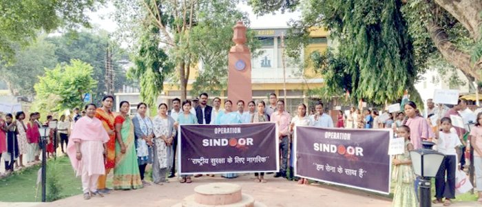 जशपुरनगर। राष्ट्रीय सुरक्षा के लिए नागरिक अभियान के अंतर्गत 17 मई को प्रदेश भर के प्रत्येक गांव, नगर और पंचायत में भव्य तिरंगा यात्रा का आयोजन किया गया। इस क्रम में जिला मुख्यालय जशपुर में भी तिरंगा यात्रा का आयोजन हुआ।यहां जशपुर विधायक श्रीमती रायमुनी भगत के नेतृत्व में तिरंगा यात्रा निकाली गई। ज्ञात हो कि देश की सुरक्षा में नागरिक सहभागिता के संकल्प के साथ आयोजित की गई तिरंगा यात्रा का आयोजन अत्यंत ही धूमधाम से जशपुर में आयोजित हुआ,यहां जशपुर विधायक श्रीमती रायमुनी भगत के नेतृत्व में जय स्तंभ चौक से लेकर रणजीता स्टेडियम तक यात्रा निकाली गई।उक्त यात्रा में जनप्रतिनिधियों से लेकर आम नागरिकों तक की भागीदारी सुनिश्चित हुई। यात्रा की अगुवाई राष्ट्रीय सुरक्षा के लिए नागरिक शीर्षक वाले बैनर से की गई।इस अवसर पर जशपुर विधायक श्रीमती रायमुनी भगत ने देश की सशस्त्र सेनाओं,अर्धसैनिक बलों के योगदान को सराहते हुए भारत की जीत, सशस्त्र बलों तथा सैनिकों और उनके परिवारों को धन्यवाद भरा संदेश दिया।ऑपरेशन सिंदूर के माध्यम से यह संदेश गांव-गांव तक पहुँचेगा कि राष्ट्र की सुरक्षा सबकी साझी जिम्मेदारी है। यह आयोजन प्रदेशवासियों के उत्साह, सेनाओं के प्रति सम्मान और राष्ट्रीय एकता की भावना को सशक्त करने वाला एक अनुकरणीय प्रयास है। यात्रा में पूर्व सैनिकों, सैनिकों के परिजनों, विद्यालयों के छात्रों, एनसीसी, एनएसएस, स्काउट्स एवं सामाजिक संस्थाओं से जुड़े लोगों भी शामिल हुए। शांतिपूर्ण,अनुशासित, संगठित एवं उत्साहपूर्ण निकाली गई यात्रा के मार्ग में उद्घोषणा वाहनों के माध्यम से देशभक्ति गीतों का प्रसारण किया गया और नागरिकों द्वारा देशभक्ति के नारे तिरंगा यात्रा में लगाए गए। इस अवसर पर जनपद अध्यक्ष गंगाराम भगत, पूर्व जिला पंचायत सदस्य कृपा शंकर भगत, जशपुर एसडीएम ओमकार यादव,जनपद पंचायत सीईओ लोकहित भगत,बीईओ श्रीमती कल्पना टोप्पो, तिलक राम सिद्धार्थ, डीडीसी श्रीमती शांति भगत, सावित्री निकुंज, प्रभा यादव, रामदास, पंकज जयसवाल, सुषमा सिंह, रंजीत भगत, भजुनन्दन राम, आशुतोष राय सहित आमजन और अन्य जनप्रतिनिधि विशेष रूप से उपस्थित रहे।