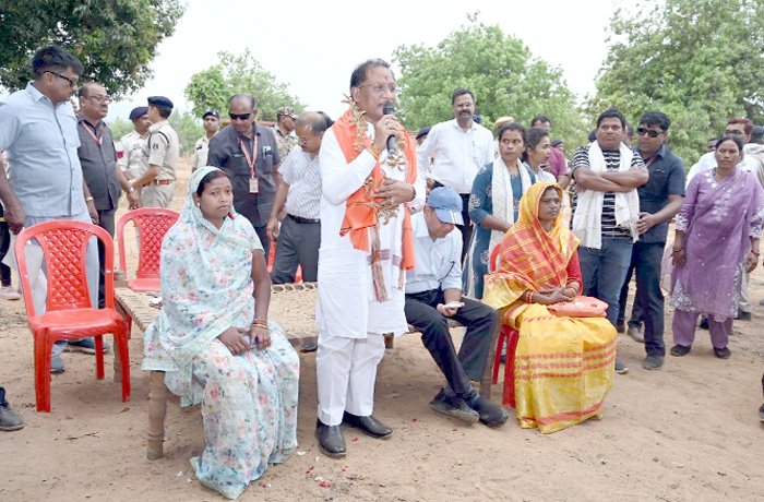 महुआ पेड़ के नीचे लगाई चौपाल, ग्रामीणों से किया संवाद, सुनी समस्याएं, समाधान के दिए निर्देश