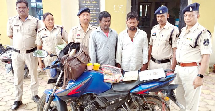 दो गिरफ्तार, आरोपियों से एक बाइक सोने की चेन, टाप्स व केमिकल जब्त, कुसुमताल व पतरापाली में दिए थे घटना को अंजाम
