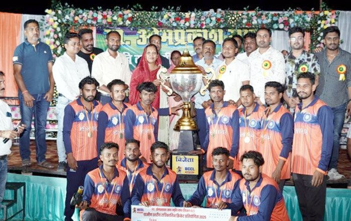 प्रतियोगिता का फाइनल मैच केशवपुर अंबिकापुर और भेड़ीमुड़ा रायगढ़ की टीमों के बीच खेला गया। टॉस जीतकर पहले बल्लेबाजी करते हुए केशवपुर के बल्लेबाजों ने आक्रामक खेल का प्रदर्शन किया। उन्होंने मैदान के चारों ओर शानदार चौकों और छक्कों की बौछार कर दी। केशवपुर की टीम ने निर्धारित 8 ओवर में 6 विकेट खोकर 110 रन का बड़ा स्कोर खड़ा किया। टीम के स्टार बल्लेबाज टेनिस ने मात्र 14 गेंदों में 39 रन की तूफानी पारी खेली, जबकि राकेश ने 12 गेंदों में 31 रन जोडक़र टीम को मजबूत स्थिति में पहुंचाया। भेड़ीमुड़ा की ओर से गेंदबाज लेजर ने शानदार प्रदर्शन करते हुए 3 विकेट चटकाए। भेड़ीमुड़ा रायगढ़ की टीम लक्ष्य का पीछा करते हुए दबाव में नजर आई। हालांकि अनिल ने 22 गेंदों में 33 रन बनाकर कुछ संघर्ष जरूर किया, लेकिन बाकी बल्लेबाज केशवपुर के गेंदबाजों के सामने टिक नहीं सके। भेड़ीमुड़ा की पूरी टीम 8 ओवर में 6 विकेट खोकर केवल 77 रन ही बना सकी। केशवपुर के गेंदबाज कन्हैया ने शानदार गेंदबाजी करते हुए 3 विकेट लिए और टीम की जीत में अहम भूमिका निभाई। केशवपुर ने 33 रनों से जीत दर्ज कर ट्रॉफी पर किया कब्जा। इस प्रकार केशवपुर अंबिकापुर की टीम ने भेड़ीमुड़ा रायगढ़ को 33 रनों से हराकर प्रतियोगिता का खिताब अपने नाम किया। विजेता टीम को ?1,00,000 नकद राशि और ट्रॉफी, वहीं उपविजेता भेड़ीमुड़ा टीम को रू. 51,000 नगद पुरस्कार प्रदान किया गया।इस भव्य समापन समारोह में जिला पंचायत उपाध्यक्ष शौर्य प्रताप सिंह जूदेव,जनपद सदस्य अटल बिहारी साय, दोकड़ा मण्डल अध्यक्ष रवि यादव, महामंत्री रामविलास राम सहित बड़ी संख्या में जनप्रतिनिधि मौजूद रहे। मुख्य अतिथि श्रीमती कौशल्या साय ने अपने वक्तव्य में कहा, स्वर्गीय ओमप्रकाश साय जी के नाम से आयोजित यह प्रतियोगिता एक प्रेरणास्पद पहल है। ग्रामीण अंचल में इस प्रकार के खेल आयोजनों से युवाओं को अपनी प्रतिभा दिखाने का अवसर मिलता है और उनमें आत्मविश्वास का संचार होता है।उन्होंने आयोजन समिति को इस सफल आयोजन के लिए बधाई दी और भविष्य में ऐसे आयोजनों को और अधिक प्रोत्साहित करने की बात कही।