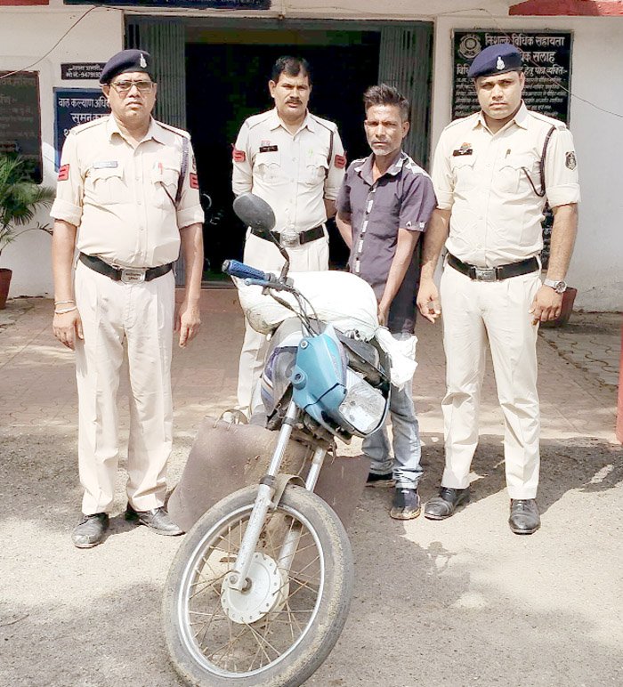 सारंगढ़। पुलिस अधीक्षक आंजनेय वार्ष्णेय के द्वारा जिले के थाना क्षेत्र में अवैध जुआ, सट्टा, शराब, मादक पदार्थ गांजा में सलिप्त व्यक्तियों के उपर कड़ी से कड़ी कार्यवाही करने निर्देशित किया गया है अति पुलिस अधीक्षक श्रीमती निमिषा पाण्डेय एवं उप पुलिस अधीक्षक अविनाश मिश्रा के कुशल मार्गदर्शन में मुखबीर की सूचना पर 40 लीटर अवैध कच्ची महुआ शराब, मोटर साइकल के साथ 01 आरोपी को गिरफ्तार करने में सफलता हासिल हुई है। 01 जून 25 के सुबह10 30 बजे जरिये मुखबीर से सूचना मिली कि एक व्यक्ति ग्राम कंचनपुर – भूलमुड़ा कच्ची रोड से अपने मोटरसाइकिल क्र ष्टत्र 13 ्य 3668 में भारी मात्रा में अवैध कच्ची महुआ शराब बिक्री हेतु लेकर आ रहा है की सूचना पर कंचनपुर – भूलमुड़ा रोड पर घेराबंदी कर मोटरसाइकिल क्र ष्टत्र 13 ्य 3668 के चालक को पकड़ा गया। जिससे नाम पता पूछने पर अपना नाम रतन दास मानिकपुरी पिता कीर्ति दास मानिकपुरी उम्र 34 वर्ष ग्राम पुरैना तेली थाना चंद्रपुर जिला शक्ति हाल मुकाम सरिया थाना सरिया का होना बताया। आरोपी के मोटरसाइकिल को चेक करने पर मोटर साइकल पीछे में प्लास्टिक बोरी में भरा करीब 40 लीटर अवैध महुआ शराब रस्सी से बंधा मिला। शराब के सम्बन्ध में पूछताछ करने पर बिक्री हेतु परिवहन करना बताया। आरोपी के कब्जे से 40 लीटर महुआ शराब कीमती 8000 तथा मोटर साइकल क्र सुपर स्पलेंडर ष्टत्र 13 ्य 3668 कीमती 20000 जुमला कीमती 28000 रु को उसके पेश करने पर जप्त कर उसे विधिवत् गिरफ्तार कर आरोपी के विरूद्ध थाना सरिया में अप0 क्र 105/25 धारा 34 (2) 59 (क) आब. एक्ट कायम कर आरोपी को 01 जून 25 को रिमाण्ड पर भेजा गया है। उक्त कार्यवाही में थाना प्रभारी प्रमोद यादव सउनिरी सुमन चौहान, प्रआ टीका राम, आर. दिलीप स्नेही, लक्ष्मी पटेल,राम पटेल अनुज सिदार म.आ सविता यादव का महत्वपूर्ण योगदान रहा।