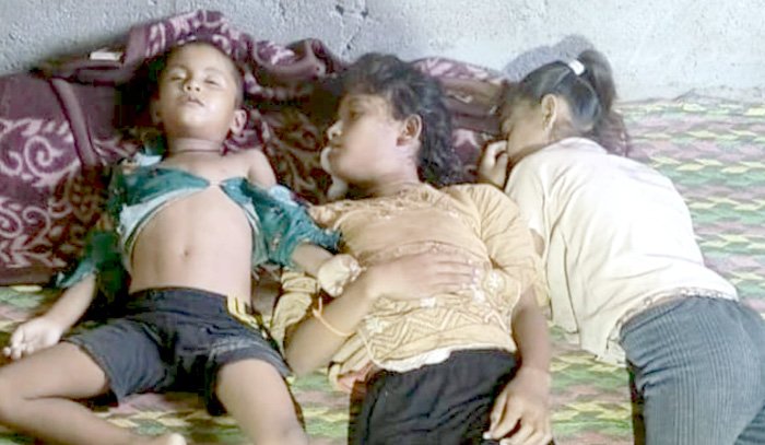 पखांजुर। कोयलीबेड़ा ब्लॉक के परतापुर थाना क्षेत्र के अंतर्गत चंदनपुर के शांतिनगर पीवी 70 मे दिल दहलाने वाली हृदय विदारक घटना, शनिवार सुबह एक दंपति के मुखिया देवेंद्र बैरागी उम्र 40 वर्ष ने घरेलू विवाद में अपनी ही पत्नी का अफेयर के शक के चलते खुद तीन बच्चों समेत अपनी पत्नी को कोल्ड ड्रिंक (पेय पदार्थ) में जहर मिलाया, बच्चों को पिलाया स्वयं खुद पी लिया, पीने के बाद बच्चों ने तत्काल अपना दम तोड़ा, इसके बाद गर्भवती पत्नी नमिता बैरागी उम्र 35 वर्ष को भी पेय में जहर पिलाया, मां के चिल्लाने की आवाज से स्थानीय ग्रामीणों ने मौके पर पहुंचे लेकिन तब तक बच्चों की सांसे थम चुकी थी, जिनका नाम कुमारी दीप्ति बैरागी 12 वर्ष, कुमारी ज्योतिका 9वर्ष, देवराज उम्र 6 वर्ष है पति और पत्नी बेहोशी की हालत में जमीन पर पड़े मिले ग्रामीण तत्काल एंबुलेंस और पुलिस को इसकी सूचना दी साथ ही महिला के मायके पक्ष को भी इसकी जानकारी दी, सिविल हॉस्पिटल पखांजूर में देवेंद्र और नमिता का उपचार जारी है उनकी हालत नाजुक बताई जा रही है, पखांजूर पुलिस ने मर्ग क़ायम कर जांच में जुटी गई है।
