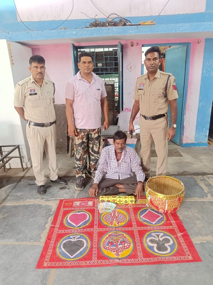 थाना जूटमिल पुलिस ने ग्राम गढ़उमरिया तालाब के पास जुआ खेलाने की सूचना पर दबिश दी। पुलिस ने मौके पर रतराम बंजारे (56 वर्ष) निवासी गढ़उमरिया सतनामी मोहल्ला को खुडख़ुडिय़ा गोटी से जुआ खेलते पकड़ा। आरोपी के पास से 6 नग खुडख़ुडिय़ा गोटी, जुआ सामग्री और नगदी 1130 रुपये जब्त कर उसके विरुद्ध जुआ प्रतिषेध अधिनियम 2022 की धारा 6(क) के तहत कार्रवाई की गई। रेड टीम में प्रधान आरक्षक रामनाथ बनर्जी, आरक्षक लखेश्वर पुरसेठ और शशिभूषण साहू शामिल रहे।