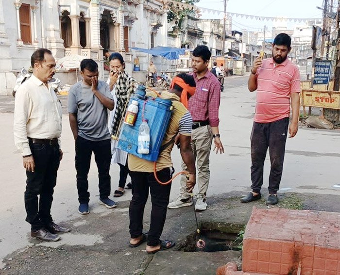 डेंगू से बचाव के लिए नगर निगम एवं जिला स्वास्थ्य विभाग की टीम द्वारा कार्य शुरू कर दिया गया है। इसमें पिछले दिनों निगम कमिश्नर श्री क्षत्रिय द्वारा डेंगू हॉटस्पॉट क्षेत्र गांधीगंज, दरोगापारा, पुलिस लाइन, बापू नगर, इंदिरा नगर आदि क्षेत्र का भ्रमण किया गया था। इस दौरान इंदिरा नगर के कबाड़ दुकान संचालक को साफ पानी जमा नहीं होने देने की चेतावनी दी गई। इसी तरह पिछले दिनों नगर निगम एवं जिला स्वास्थ्य विभाग की बैठक हुई, जिसमें भी डेंगू से बचाव के लिए तय किए कार्ययोजना पर चर्चा की गई। आज सुबह 7:00 बजे से गौरी शंकर मंदिर से निरीक्षण शुरू हुआ। सबसे पहले गौरी शंकर मंदिर की जांच की गई। मंदिर में बहुतायत संख्या में दीए एवं नारियल के खोल अन्य मिट्टी के पात्र जमा रहता है। इसमें बरसात का पानी जमा हो जाता है और इससे डेंगू का लॉर्वा पनपने की स्थिति बनती है। पिछले वर्ष यहां से भी डेंगू का लॉर्वा पाया गया था। कमिश्नर श्री क्षत्रिय ने मंदिर के पुजारी से बात करते हुए दीया,नारियल के खोल में साफ पानी जमा नहीं रहे इसका विशेष ध्यान देने की बात कही। इस दौरान मंदिर परिसर में एंटी लार्वी साइट टेमिफास लिक्विड का छिडक़ाव कराया गया। इसके बाद मुख्य सडक़ के दुकान एवं 19 नंबर वार्ड के विभिन्न गली मोहल्ले में निरीक्षण करते हुए दवाई का छिडक़ाव कराया गया। इस दौरान वार्ड के लोगों से चर्चा करते हुए उन्हें डेंगू से बचाव की जानकारी दी गई और घरों कूलर, गमले, फ्लावर पॉट, खुले हुए पानी की टंकी, फ्रिज के ट्रे, कबाड़, पड़े हुए पुराने टायर, मवेशियों को पानी या भोजन देने के लिए उपयोग होने वाले कोटना, आंगन या खाली भूमि के गढ्ढे में जमा हुए साफ पानी पर ध्यान देने की बात कही गई। इसमें घर के कूलर, गमले, फ्लावर पॉट आदि की पानी को हफ्ते में एक बार साफ करने और इसके पानी को सूखे हुए खाली जगह पर बहाने की जानकारी दी गई। इसी तरह खाली भूमि गढ्ढे, घरों में रखे कबाड़ आदि में जला हुआ मोबिल या एंटी लार्वी साइट दवा का छिडक़ाव करने कहा गया। टीम द्वारा वार्ड के भक्तिन गली, पैलेस रोड, चांदनी चौक, लाल टंकी, केवटापारा आदि डेंगू हॉटस्पॉट का निरीक्षण करते हुए वहां एंटी लार्वी साइट दवा का छिडक़ाव करने के साथ वहां के निवासियों को डेगू से बचाव और बरते जाने वाली सावधानियों की जानकारी दी गई। निरीक्षण के दौरान नगर निगम एवं स्वास्थ्य विभाग के अधिकारी कर्मचारी उपस्थित थे।