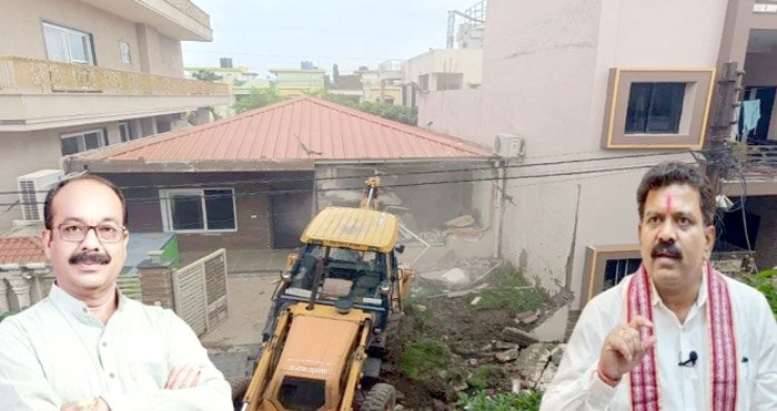 रायपुर। ब्लैकमेलिंग और सूदखोरी मामले में फरार हिस्ट्रीशीटर तोमर बंधुओं के भाठागांव स्थित दफ्तर को बलुडोजर चलाकर ढहा दिया गया. कार्रवाई के लिए अतिरिक्त बल के साथ पुलिस और निगम की टीम मौके पर पहुंची थी. इस दौरान मकान से कई अहम दस्तावेज मिले हैं. बुलडोजर एक्शन को लेकर प्रदेश के उपमुख्यमंत्री विजय शर्मा और अरूण साव ने बड़ा बयान दिया है। तोमर बंधुओं के दफ्तर पर बुलडोजर एक्शन को लेकर गृहमंत्री विजय शर्मा का बयान सामने आया है. उन्होंने सोशल मीडया पोस्ट में कहा कि विष्णुदेव सरकार में ‘सुशासन है तो चक्र सुदर्शन भी है’, किसी मंत्री-मुख्यमंत्री के साथ फोटो खिंचवाने से कोई कानून से बड़ा नहीं बन जाता. अपराधी तोमर ने कई लोगों को पीड़ा पहुंचाई है। डिप्टी सीएम अरुण साव ने कहा कि बुलडोजर तो चलेगा. हम विपक्ष में थे तब भी स्पष्ट थे, आज जनसेवा के लिए शासन में हैं तब भी स्पष्ट हैं. तब माइक से अपराधियों और आताताईयों को बोलते थे, आज हमारे नगर निगम का बुलडोजर बोलता है. विष्णु के सुशासन में एक बात स्पष्ट है, कानून के ऊपर कोई नहीं है, चाहे जितना बड़ा तुर्रम खां हो. तोमर बंधु हों या जिहादी बंधु हों. आतंक का फन फैलाओगे तो फन कुचलने का हुनर भी ‘सुशासन सरकार’ को मालूम है। बता दें कि फरार हिस्ट्रीशीटर रोहित तोमर ने पत्नी भावना तोमर के नाम से ये दफ्तर खोला था. ऑफिस का निर्माण नियमों के खिलाफ किया गया था. यहीं से सूदखोरी का काम होता था. दोनों आरोपी लंबे समय से फरार हैं. कोर्ट से आरोपियों की गिरफ्तारी का वारंट जारी है. वहीं पुलिस ने हिस्ट्रीशीटर भाइयों का पता बताने के लिए इनाम की भी घोषणा की है.