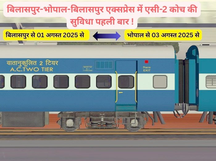 बिलासपुर-भोपाल-बिलासपुर एक्सप्रेस में एक वातानुकूलित (एसी-2) कोच की सुविधा, यात्रियों की यात्रा होगी और भी सुखद व अधिक आरामदायक