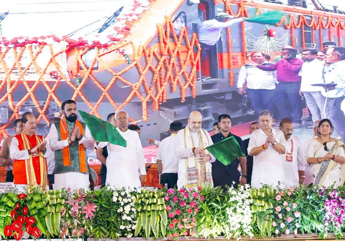 अमित शाह, गृह एवं सहकारिता मंत्री एवं नीतीश कुमार, मुख्यमंत्री, बिहार ने हरिझंडी दिखाकर किया सीतामढ़ी-दिल्ली अमृत भारत एक्सप्रेस का शुभारंभ