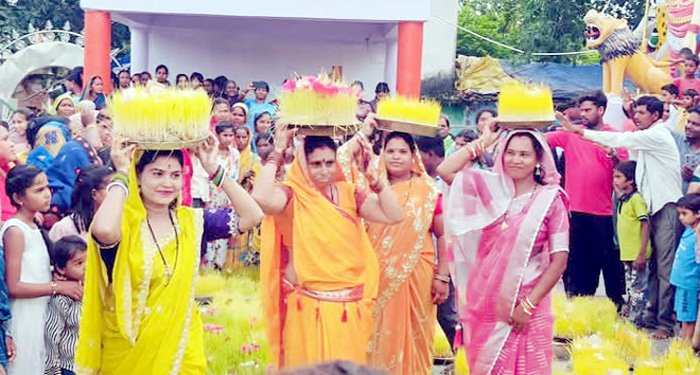भोजली पर्व मना ग्राम्य देवी कौशलेश्वरी देवी पर भोजली अर्पण कर मन्नत मांगे