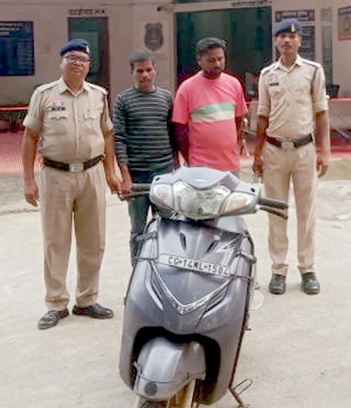 जशपुरनगर। जिले के कुनकुरी थाना क्षेत्र से चोरी हुए स्कूटी के साथ दो स्कूटी चोर को पुलिस ने दो लागों को गिरफ्तार किया है। साथ ही चोरी हुए स्कूटी को भी बरामद कर लिया है। दोनों गिरफ्तार आरोपी आदतन अपराधी हैं, इनके विरुद्ध नारायणपुर तपकर, जशपुर में चोरी, मारपीट के कई प्रकरण दर्ज हैं। पूर्व में कई मामलों में जेल जा चुके हैं। पुलिस सूत्रों से मिली जानकारी अनुसार 15 सितंबर को प्रार्थिया ऊषा बाई, निवासी चराई डांड, थाना कुनकुरी, ने थाना में रिपोर्ट दर्ज कराया था, कि दिनांक 01.09.25 को वह अपने परिवार के साथ भजन कीर्तन हेतु, चराईडांड में ही गणेश पंडाल में गई, की रात्रि लगभग 11.00 बजे अपनी सासु मां को छोडऩे घर आई थी, तब उसकी स्कूटी क्रमांक सीजी 14 एम एल 1584 उसके घर के आंगन में खड़ी थी, फिर वह अपनी सासु मां को घर में छोड़ कर पुन:, गणेश पंडाल में चली गई, रात्रि करीबन 02.00 बजे जब वह वापस अपने घर लौटी तो देखा कि घर का दरवाजा खुला हुआ था, व आंगन में खड़ी स्कूटी सीजी 14 एम एल 1584 भी वहां नहीं थी, कमरे का ताला टूटा हुआ था, समान बिखरा हुआ था, व स्कूटी की चाभी जो कि टी व्ही के पास थी, उसे लेकर, कोई व्यक्ति स्कूटी को चोरी कर ले गया है।
