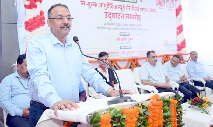 बिलासपुर। एसईसीएल सीएमडी हरीश दुहन के दिशा-निर्देश से स्वच्छता ही सेवा 2025 अभियान के अंतर्गत एक और ऐतिहासिक पहल करते हुए प्रियदर्शिनी क्लब, इंदिरा विहार कॉलोनी, बिलासपुर में नि:शुल्क आयुर्वेदिक न्यूरोथेरेपी एवं पंचकर्म कैम्प का शुभारंभ मुख्य अतिथि निदेशक (मानव संसाधन) बिरंची दास के करकमलों से आज दिनांक 26 सितम्बर 2025 को डॉ. श्रुतिदेव मिश्रा (प्रमुख चिकित्सा सेवायें, एसईसीएल), डॉ. महेन्द्र रघुवंशी (एमडी न्यूरोथेरेपी एवं वात रोग विशेषज्ञ), महाप्रबंधक (कल्याण) श्यामला राव, महाप्रबंधक (सीएसआर) सी.एम. वर्मा, उप महाप्रबंधक (मानव संसाधन-प्रशासन/ जनसंपर्क/राजभाषा) मनीष श्रीवास्तव, प्रबंधक (सिविल) भानु सिंह की उल्लेखनीय उपस्थिति में हुआ।