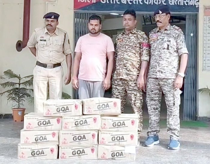पखांजूर। लगातार पखांजुर पुलिस को सूचना मिल रही थी कि मिन्टू सरकार उर्फ सोनू अवैध शराब बिक्री करने का धंधा करता है,और मध्य प्रदेश की शराब छत्तीसगढ़ में खपाया जा रहा था। दो अक्टूबर की मुखबीर से सूचना मिली कि मिंटू सरकार उर्फ सोनू अपने किराये के मकान शुभपल्ली पखांजुर में अवैध शराब रखकर बिक्री करने ग्राहक तलाश कर रहा है जिसकी सूचना की तस्दीक हेतु उच्च अधिकारियों को अवगत कराकर पखांजूर पुलिस टीम तत्काल मुखबीर के बताये स्थान पर घेराबंदी कर रेड कार्यवाही किया गया। मिन्टू सरकार उर्फ सोनू किराये के मकान तलाशी लेने पर 11 पेटी अंग्रेजी शराब मिला जिसमें फॉर सेल इन मध्य प्रदेश ऑनली निर्मित लिखा हुआ शराब 11 पेटी में कुल 528 पौबा फुल 95.04 लीटर कीमती 63,360/रु. का शराब मिला। आरोपी के विरूद्ध धारा 34 (2) आबकारी एक्ट का कार्यवाही किया गया। यह कार्यवाही श्रीमान उमनि. वरिष्ठ पुलिस अधीक्षक कांकेर आई. के. एलेसेला के निर्देशन पर अति. पुलिस अधीक्षक पखांजुर राकेश कुर्रे, एसडीओपी पखांजूर रवि खुजूर के पर्यवेक्षण तथा थाना प्रभारी पखांजूर लक्ष्मण केवट के नेतृत्व में अवैध रूप से अंग्रेजी शराब रखकर बिक्री करने के लिये ग्राहक तलाश करने वाले आरोपी मिन्टू सरकार उर्फ सोनू को हिरासत में लेकर पूछताछ करने किया जुर्म स्वीकार करने पर दो अक्टूबर को गिरफ्तार कर माननीय न्यायालय पखांजूर में पेश किया गया। माननीय न्यायालय के आदेश पर न्यायिक रिमाण्ड पर जेल भेजा गया। आरोपी को गिरफ्तार करने में सउनि. वेदन सलामे, समोद शर्मा पुरुषोत्तम ठाकुर, प्रधान आरक्षक लिहेन्द्र देवांगन, सबेन टोप्पो, हेमंत द्विवेदी, जोसेफ बड़ा, परमेश्वर कुंजाम, सरोज मण्डावी का विशेष योगदान रहा है।