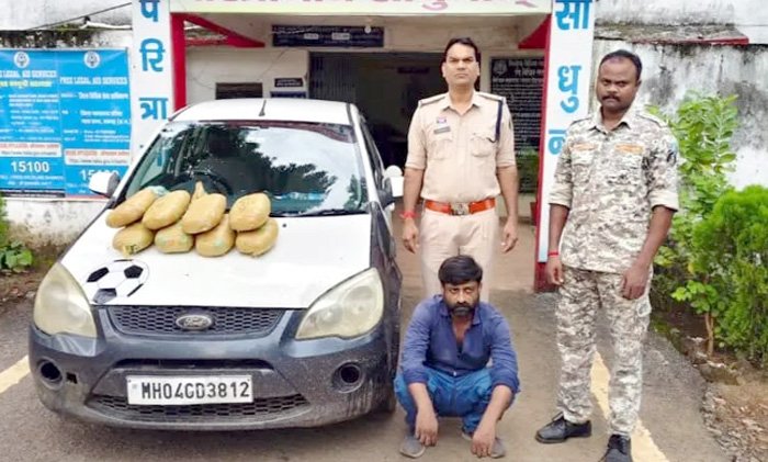सारंगढ़। पुलिस अधीक्षक आंजनेय वार्ष्णेय के द्वारा जिले के सभी थाना, चौकी प्रभारियों को जुआ, सट्टा, शराब, अवैध मादक पदार्थ गांजा में संलिप्त व्यक्तियों पर कड़ी कार्यवाही करने हेतु निर्देशित करने पर अ. पुलिस अधीक्षक श्रीमती निमिषा पाण्डेय, उपपुलिस अधीक्षक अविनाश मिश्रा के मार्गदर्शन में थाना प्रभारी प्रमोद यादव के कुशल नेतृत्व मे सरिया पुलिस को 8 किलो 335 ग्राम अवैध मादक पदार्थ गांजा के साथ 1 आरोपी को गिरफ्तार करने में सफलता प्राप्त की। 04 अक्टूबर 25 को दौरान पेट्रोलिंग जरिये मुखबीर सुचना मिला एक सफेद रंग के कार क्रमांक एमएच-04 जीडी-3812 का चालक उड़ीसा से गांजा लेकर सरिया तरफ आ रहा है सूचना पर थाना के सामने मेन रोड सामुदायिक भवन के पास घेराबंदी कर फोर्ड क्लासिक कार क्रमांक एमएच-04 जीडी- 3812 को रोककर तलाशी लेने पर कार के अंदर गुप्त चेंबर में 8 किलो 335 ग्राम अवैध मादक पदार्थ मिला।
