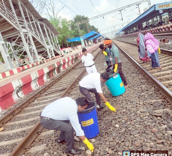 इसी क्रम में आज दिनांक 07 अक्टूबर को ‘स्वच्छ पटरी’ थीम पर मंडल के सभी स्टेशनों के प्लेटफार्म के पटरीयों पर श्रमदान के तहत विशेष स्वच्छता अभियान चलाई गई। मंडल के नामित अधिकारियों और कर्मचारियों की टीमों द्वारा मंडल के प्रमुख स्टेशनों के प्लेटफार्मों की पटरियों में स्वच्छता का गहन निरीक्षण किया गया। मंडल के बिलासपुर, उस्लापुर, रायगढ़, चांपा, कोरबा, शहडोल, उमरिया, अनुपपुर, पेंड्रारोड सहित सभी प्रमुख स्टेशनों के साथ ही साथ छोटे-छोटे स्टेशनों में भी स्वच्छता अभियान के तहत प्लेटफार्म के पटरीयों की विशेष साफ-सफाई की गई। पटरीयों के आसपास के घास की कटाई, ड्रेनेज प्रणाली की सफाई, प्लास्टिक कचरों का निष्पादन, पाइप लाइन का निरीक्षण करने के अलावा प्लेटफार्म के शौचालयों में बेहतर सफाई सुनिश्चित की गई। निरीक्षण के दौरान प्लेटफार्म में उपलब्ध सभी सफाई कर्मचारियों को स्वच्छता से सबंधित दिशा निर्देश दिये गए। यात्रियों से कचरे को प्लेटफार्म, पानी निकासी की जगह, पटरीयों पर ना फेंकने और डस्टबीन के उपयोग करने की अपील की गई। इसके साथ ही यात्रियों को बताया गया की पानी की खाली बोतल पटरी पर न फेके, इन बोटलों को बोटल क्रशर मशीन में डालें। पटरीयों के आसपास के लोगों को खुले में शौच नहीं करने एवं यात्रियों को स्टेशन परिसर स्वच्छ व सुंदर बनाए रखने के प्रति जागरूक भी किया गया।