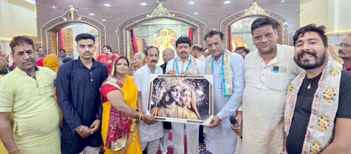 पालिका अध्यक्ष कमल गर्ग छाया विधायक महेश साहू ने बाबा के दरबार में पहुंचकर बाबा का लिया आशीर्वाद शरद पूर्णिमा महोत्सव श्री श्याम अखंड ज्योति पाठ में नगर पालिका अध्यक्ष कमल गर्ग और छाया विधायक महेश साहू तथा पार्षदों ने श्री श्याम बिहारी मंदिर पहुंचकर बाबा का आशीर्वाद लिया और क्षेत्र की प्रगति और खुशहाली की बाबा श्याम से प्रार्थना करी। इस अवसर पर श्याम बिहारी मंदिर में सैकड़ों भक्तों की उपस्थिति रही।