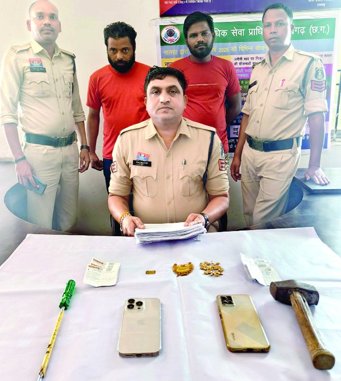 पुलिस अधीक्षक दिव्यांग पटेल और नगर पुलिस अधीक्षक मयंक मिश्रा के मार्गदर्शन पर थाना प्रभारी सुखनंदन पटेल की टीम ने जांच को आगे बढ़ाते हुए मुखबिर सूचना के आधार पर संदेही इकराम खान और मोह. समीर को हिरासत में लिया। पूछताछ में इकराम ने अपने साथियों साबिर उर्फ बाटली और सद्दाम मल्लिक के साथ मिलकर चोरी करना स्वीकार किया। आरोपियों के बयान के आधार पर धारा 317(2), 317(5), 3(5) बीएनएस जोड़ी गई। पुलिस ने पहले चरण में आरोपियों से एक सोने का हार, एक बिस्किट, एक अंगूठी और चार जोड़ी चांदी की पायल समेत करीब तीन लाख रुपये का सामान बरामद किया था। वहीं फरार चल रहे दोनों आरोपी साबिर उर्फ बाटली और सद्दाम मल्लिक को पुलिस ने कल रात दबिश देकर गिरफ्तार कर लिया। आरोपी सद्दाम मल्लिक के मेमोरेंडम पर पुलिस ने एक सोने का मंगलसूत्र, 40 नग सोने के दाने, चोरी में प्रयुक्त हथौड़ा, पेचकस और बाइक (क्रमांक सीजी 13 एएच 3447) बरामद की। वहीं आरोपी मोह. साबिर उर्फ बाटली के सकुनत से एक सोने का ब्रेसलेट, आईफोन मोबाइल और ट्रेन का टिकट जब्त किया गया। दोनों आरोपियों को आज न्यायिक रिमांड पर भेज दिया गया।