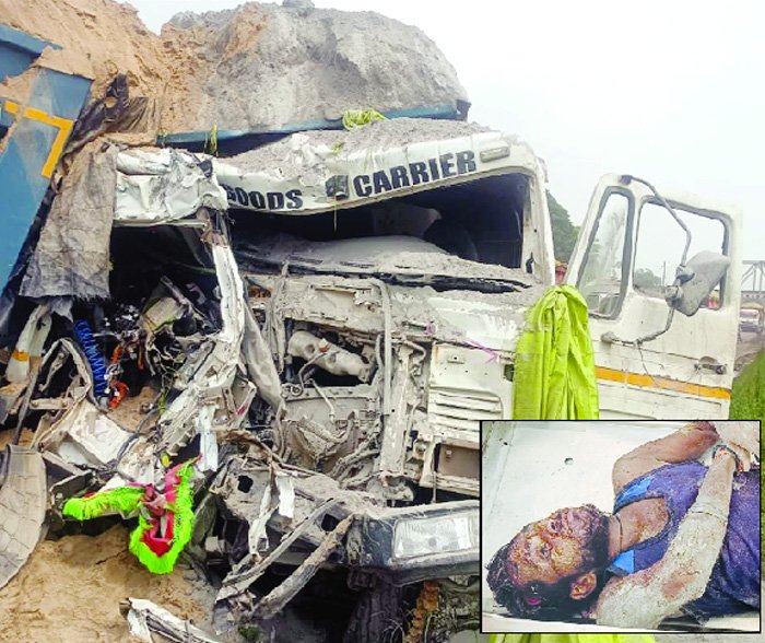 दो हाइवा में भिड़ंत, एक चालक की मौत, दूसरा घायल