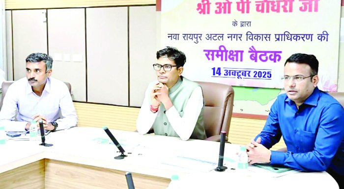 रायपुर। नवा रायपुर अटल नगर विकास प्राधिकरण में आज वित्त, आवास एवं पर्यावरण मंत्री ओ.पी. चौधरी की अध्यक्षता में निवेश, अधोसंरचना विकास और जनसुविधाओं से संबंधित कार्यों की प्रगति की समीक्षा बैठक आयोजित हुई। बैठक में मंत्री श्री चौधरी ने अधिकारियों से शहर के योजनाबद्ध और तीव्र विकास पर विस्तृत चर्चा करते हुए कहा कि नवा रायपुर का संतुलित, आधुनिक और सर्वसुविधायुक्त विकास राज्य सरकार की सर्वोच्च प्राथमिकता है। उन्होंने विभागीय अधिकारियों को निर्देशित किया कि चल रही परियोजनाओं को निर्धारित समयसीमा में गुणवत्ता के साथ पूर्ण किया जाए, ताकि नागरिकों को बेहतर शहरी सुविधाएँ उपलब्ध हो सकें। उन्होंने बताया कि विकास कार्यों में गति लाने के लिए इस वर्ष राज्य शासन के बजट अंतर्गत पूंजीगत व्यय का लक्ष्य 1000 करोड़ रुपए रखा गया है।
