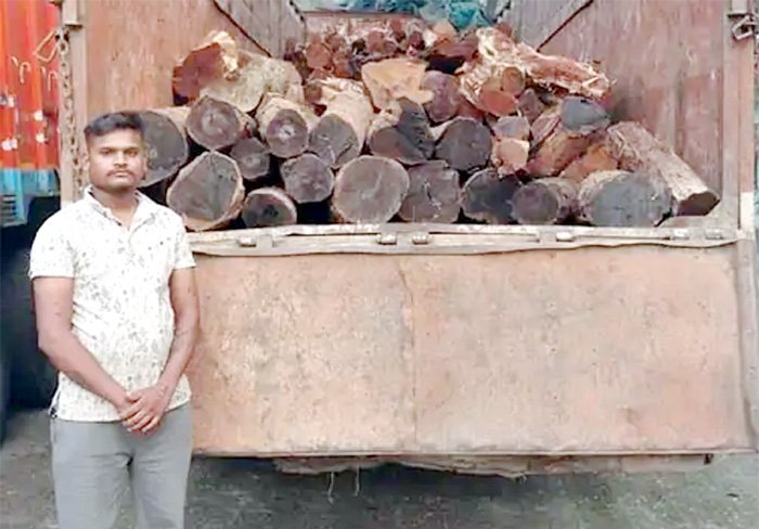 प्रतिबंधित लकडिय़ों से भरी ट्रक पकड़ाई, लाखों की ईमारती लकड़ी जब्त