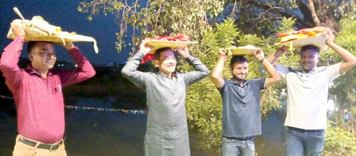 छठ घाट पर गूंज रहे गीत- सैयां लेके चला माई के बहंगिया