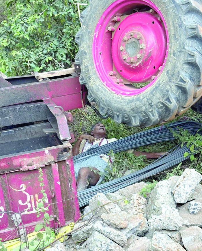 ट्रैक्टर पलटने से ट्राली में बैठे ग्रामीण की मौत