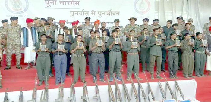 21 नक्सलियों ने एके-47 समेत अन्य हथियारों के साथ किया आत्मसमर्पण