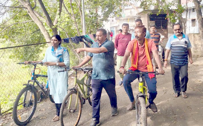 सफाई का जायजा लेने सायकल में पहुंचे महापौर चौहान