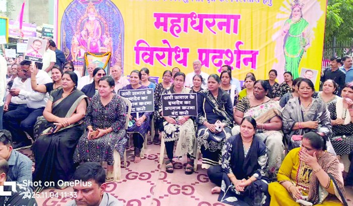 रायगढ़। आज अग्र समाज द्वारा एक कुंठित मानसिकता के व्यक्ति के द्वारा अग्रसेन महाराज भगवान झूलेलाल और हमारे देश के महापुरुष के ऊपर बहुत ही अमर यदि टिप्पणी की गई इसके विरोध स्वरूप आज हजारों की संख्या में अग्रवाल समाज के महिला और पुरुषों ने धरना प्रदर्शन करके अपना आक्रोश व्यक्त किया और अमित बघेल के ऊपर छत्तीसगढ़ शासन और रायगढ़ के प्रशासन से राष्ट्रद्रोह सहित गंभीर धाराओं में अपराध दर्ज करने के लिए मांग रखी है।