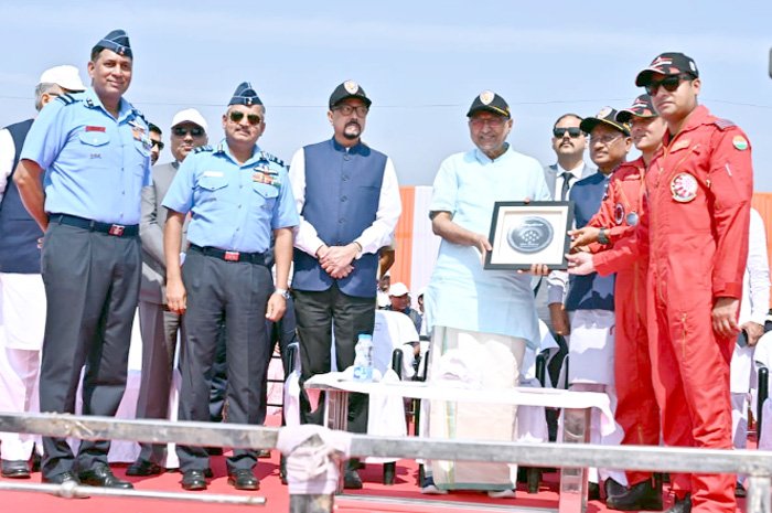 एयर शो में ‘सूर्यकिरण’ की टीम के नौ हॉक-मार्क-123 फाइटर विमानों ने आसमान में हार्ट, डायमंड, लूप, ग्रोवर, डान लाइट, कॉम्बैट तेजस जैसे शानदार फार्मेशन बनाकर लोगों को रोमांचित किया। नीले आसमान में उड़ते लाल-सफेद जेट विमानों द्वारा तिरंगे की आकर्षक ट्रेल छोडऩे पर सेंध जलाशय परिसर तालियों और जय-हिंद के नारों से गूंज उठा। हज़ारों की संख्या में मौजूद नागरिक, युवा और बच्चे लगातार विमानों की कलाबाजियों को अपने कैमरों और मोबाइलों में कैद करते रहे।